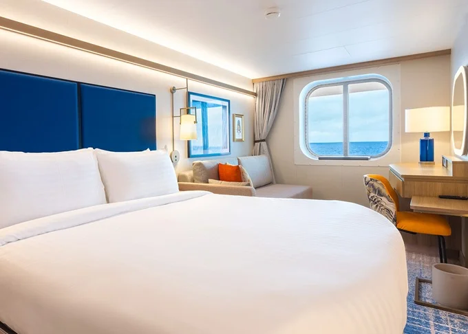 L5 - Kajuta s oknom Panoramic Ocean View 24 m². Celoplošné neotvárateľné okno, výhľad na more. 14. paluba vpredu. Max 3 osoby. 3 819 € 1 273 € za osobu